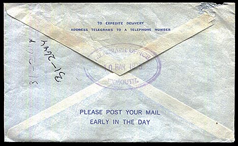 The earlier of two used examples of this envelope. It is dated 10 March 1975. The other used envelope was also used at Exmouth but dated 5 September 1975. Both are from the Katy Wild collection. |
