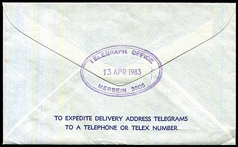 ![]() Printed in 1971 by SGGS Graysmith. Used 28 August 1972 at Melbourne. |