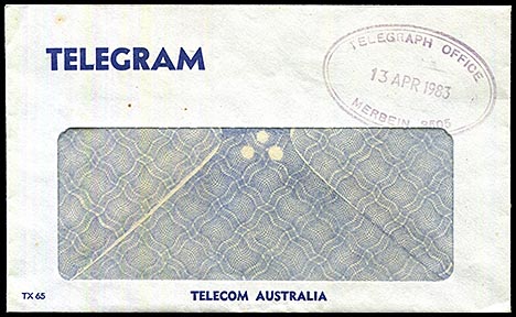 Delivery envelope with a telegram used at (Telegraphs) Mortdale, NSW Characteristics:
