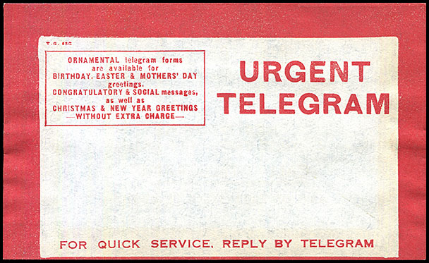 | Heading and notes: | Form No. T. G. 65C. URGENT TELEGRAM is right justified. |