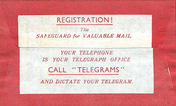 | Colours (text & envelope): | Red on white. |