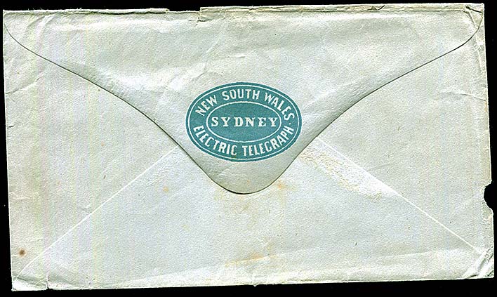 Has a reasonable strike of a scarce Tingha backstamp of 29 August. The peak of the flap has an embossed oval with Flap has rounded peak and moderately curved sides. |