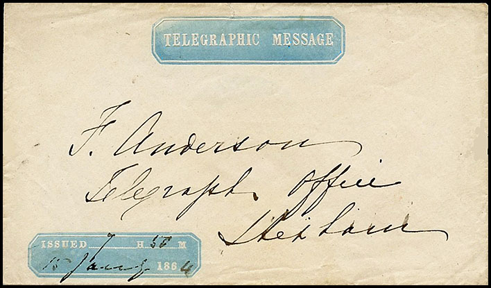 Cover of the same design as for the Victorian Format 3 sent to Shetland Islands on 15 January 1864. |