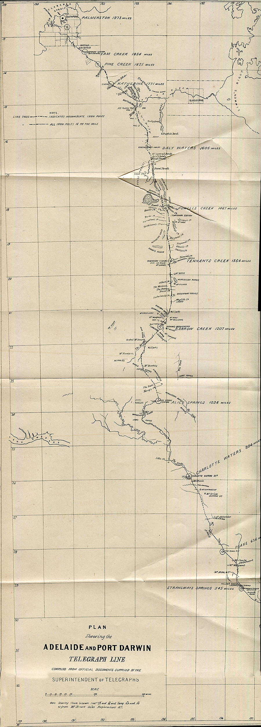 Map of Adelaide and Port Darwin Telegraph line.