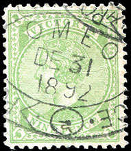 1. Used in blue: 5 February 1889 and 12 September 1892.