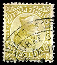 ![]() 1? December 18??. On a 3d yellow-olive Naish design Stamp Duty. |