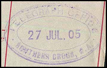 The office was issued with three types of rubber oval date stamps for use with telegraphs: