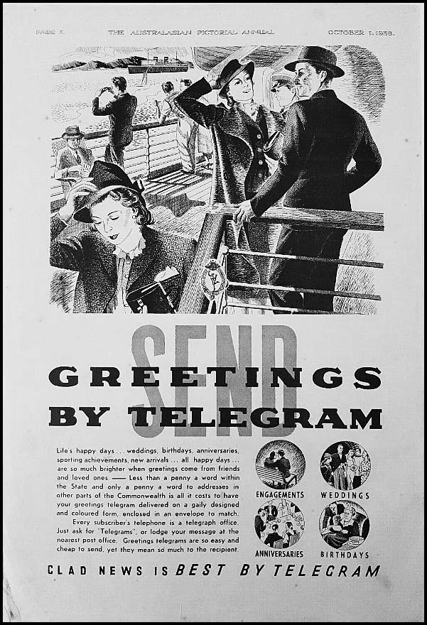 Four advertisements for Social Telegrams - this design being available from 1936 to 1942.