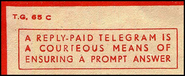 Ornamental telegram forms ... Used on the flap of ordinary PMG correspondence envelopes about 1937. |