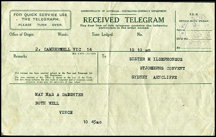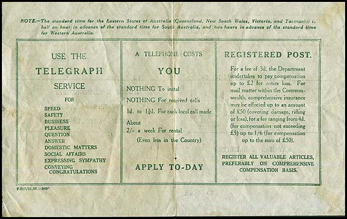 The November 1936 printing is the same except for the COMMONWEALTH heading being 75 mm wide not 83 mm as in the telegram shown here. |