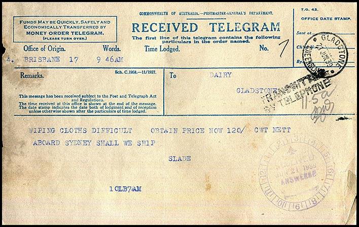 The November 1936 printing is the same except for the COMMONWEALTH heading being 75 mm wide not 83 mm as in the telegram shown here. |