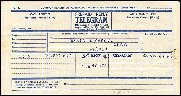 NOTE: Baker & Duffy were well known Sydney stamp dealers in the Imperial Arcade. |