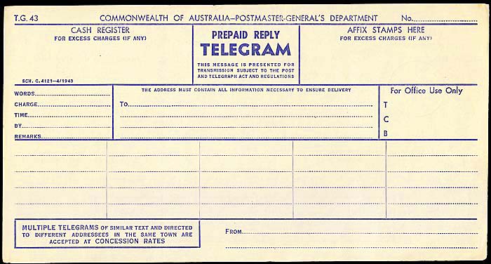 • TELEGRAM is in larger letters than PREPAID REPLY;