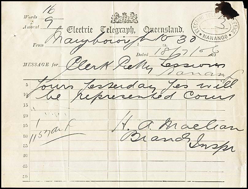 | Heading and notes: | No form number. ELECTRIC TELEGRAPH, QUEENSLAND in gothic font below Crest. |