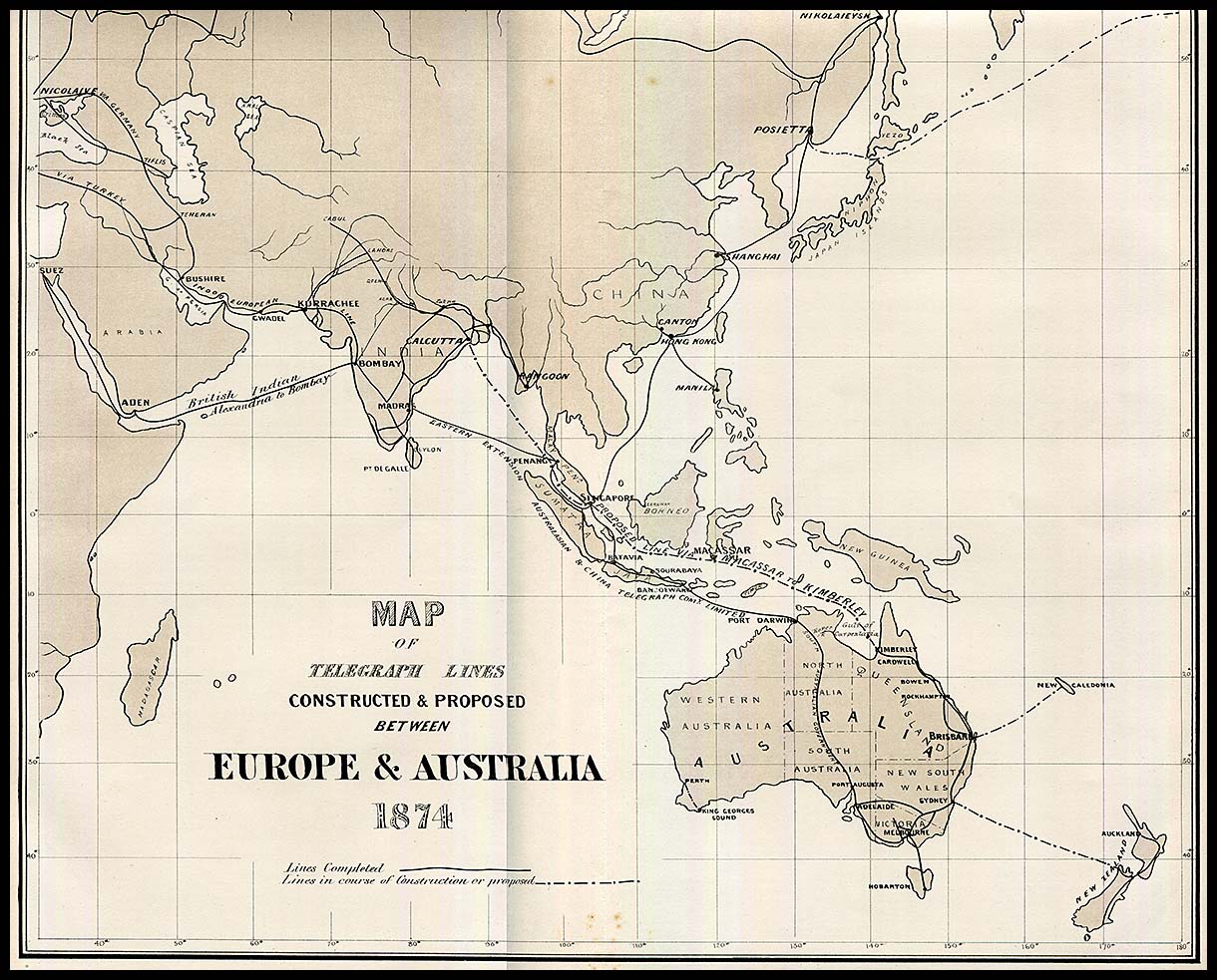 1874 Report by the Superintendent - Annex showing Map of Telegraph lines to Europe.