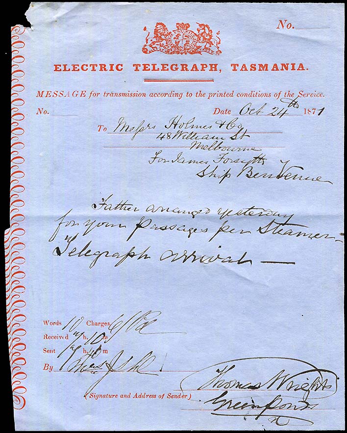 An inter-colonial telegram sent to Melbourne, Victoria. Rare to see them.