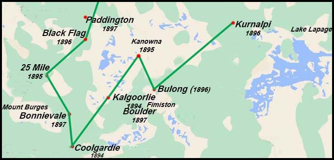 It is also (generously) appropriate to make an important observation here - the line through Dundas from Coolgardie and Norseman en route (possibly) to Esperance was being constructed at the same time as the Dundas - Ponton's - Eyre - Eucla inland line (May-June 1896). In addition, lines were simultaneously being constructed within the Colony: