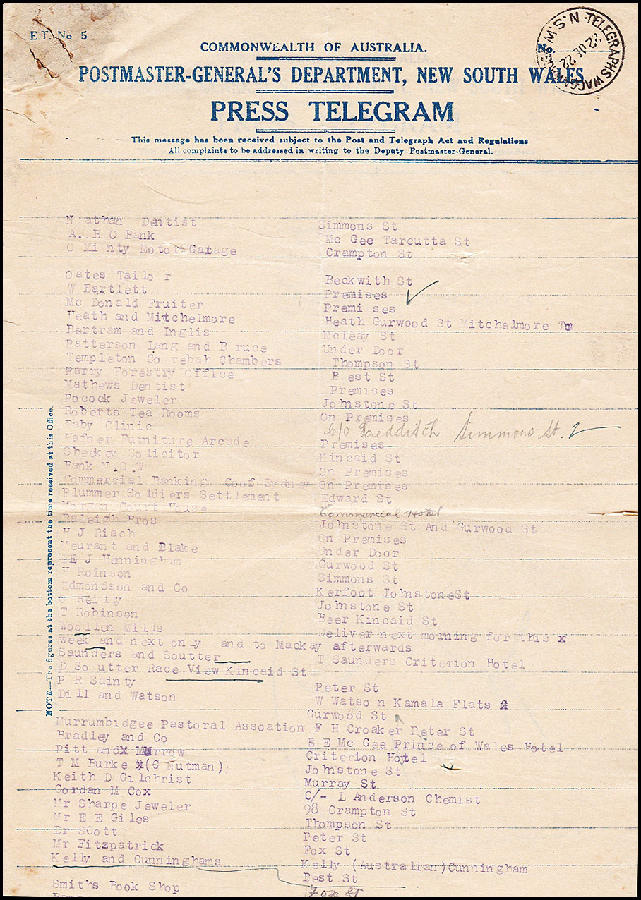 COMMONWEALTH OF AUSTRALIA above POSTMASTER-GENERAL's DEPARTMENT, NEW SOUTH WALES.