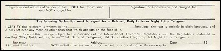 References for the declaration here related to "a Deferred, Daily Letter or Night Letter Telegram". |
