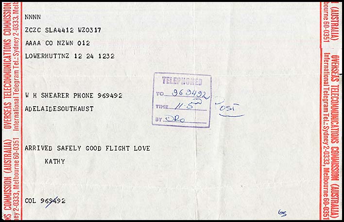 | Heading and notes: | No form number. Heading on the side-mast is OVERSEAS TELECOMMUNICATIONS COMMISSION (AUSTRALIA) over INTERNATIONAL TELEGRAM. |