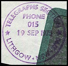Personnel: May 1876: Mr. Frederick J. Colls, a probationer in the Electric Telefraph Office at Yass was transferred to be Junior Operator at Parkes. February 1883: Mr. John Park, Telegraph Operator at Parkes for many years, was transferred to Moss Vale to be Station Master. His place was filled by Mr. Neil McIntosh from Moss Vale. June 1883: Mr. John Buckley, messenger at Mount Victoria was transferred to be an operator at Parkes in lieu of Mr. Neil McIntosh who was dismissed. March 1900: Mr. John Buckley, Operator at Parkes was promoted to be Telegraph Master at Raymond Terrace. July 1925: Mr. Ernest Jones, telegraph linesman in Forbes for a number of years, was last week transferred to Parkes. He is a married man and will be making his home here in the near future. No special date stamps were ever issued to Parkes for use with telegraphic work. |