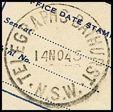 ![]() 2 July 1908. Used on 9d Commonwealth issue which could be used to pay the cost of a 16 word ordinary rate telegram to a destination within NSW. |