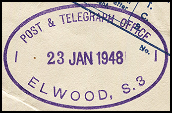 A rubber oval date stamp (RO3-ELSTERNWICK) marked ELSTERNWICK but no inclusion of either TELEGRAPH or POST OFFICE.