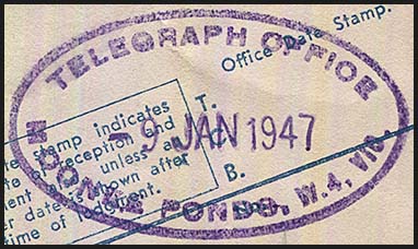 | The usual postal date stamp was also used on telegrams. | ![]() |