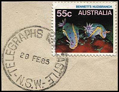 Muswellbrook was one of the 29 Telegraph Offices included in the special printings of delivery envelope NC-EO-3. These envelopes incorporated an embossed oval seal (EO6-ET) on the flap of the envelope with NEW SOUTH WALES at the top and ELECTRIC TELEGRAPH at the base. The office name was embossed across the centre of the seal.