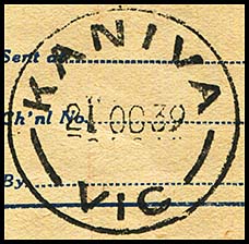 | The usual postal date stamp was used on telegrams at Kaniva. | ![]() |
