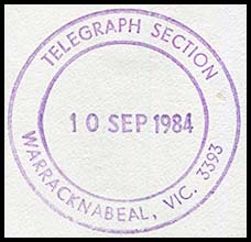 Two formats for circular rubber TELEGRAPH SECTION date stamps were used at Warracknabeal: