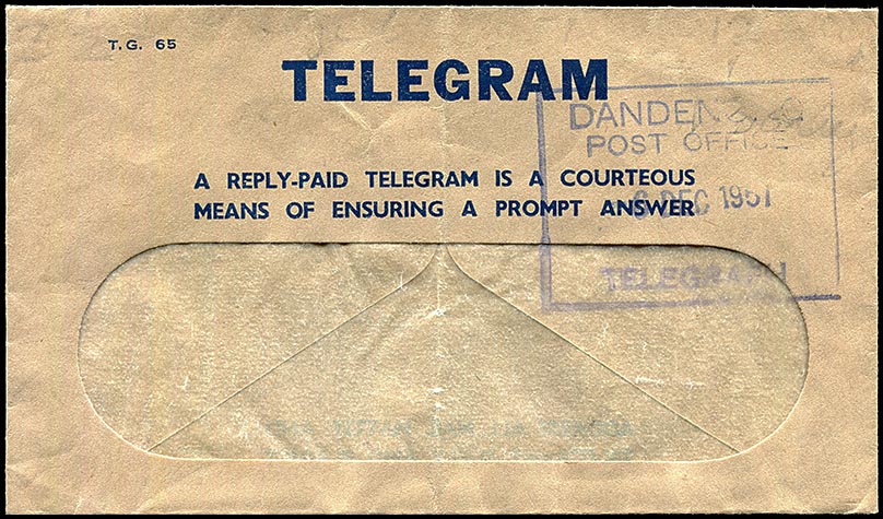 3. A rubber oval POST OFFICE date stamp was used for telegraphic work.