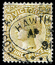 | The usual Post Office date stamps were also used on telegrams. | ![]() Northcote 65 duplex. 24 April 1896. Has dots for separators. Used on VC-DO-.15A. |