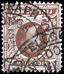 | In addition, the usual postal steel date stamp - a Barred Numeral 54 - was also used on telegrams. | ![]() 1 April 1895. On telegram of type VC-DO-15B. |