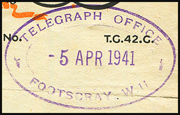 | A Post Office rubber oval date stamp was also used on telegrams.