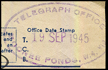| Postal date stamps were also applied telegrams: