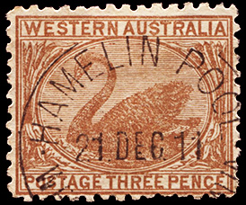 | The usual postal date stamp was also used for telegraphic business. | ![]() 8 September 1910. WESTERN AUSTRALIA at base. Commonwealth period Type A. |