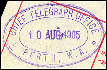 | Chief Telegraph Office/ Perth. Letters are more rounded.