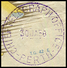 | Telegraphs/ G.P.O. Perth. Rubber oval date stamp (RO2 - T).