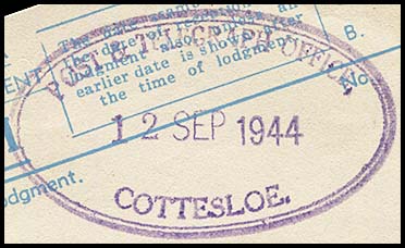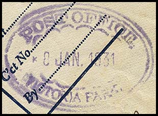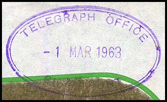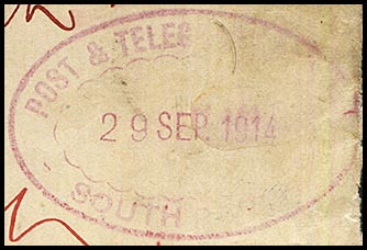 | It appears as if the Office was issued with an oval rubber date stamp. The fromat was RO6-P&TO and there is a reference in Goulder to a possible date of 1902. If the date stamp does exist, it would be very rare. |