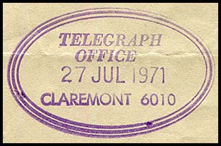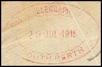 Three types of rubber oval date stamp were issued to the South Perth Telegraph Office: