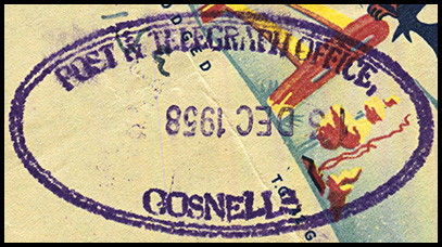 ![]() 15 December 1958. Used on a CONGRATULATIONS delivery form (AW-GC-54B) to Miss J. Dowson "Wising you both happiness today and always". Form kindly supplied by Malcolm Brown, WA. |