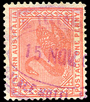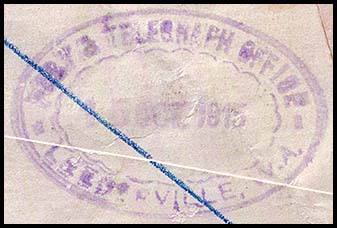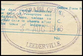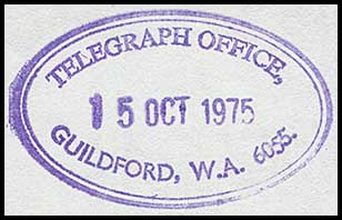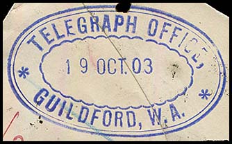 A postal date stamp was used at Guilford on a very special item -- a transmission form which had been posted from Perth to Guilford. This form (WC-TO-3B) is the only Western Australian form recorded as having been posted. |