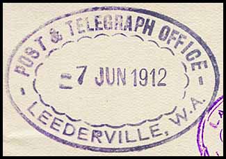 | Seven formats for date stamps were issued for use with telegrams at Leederville: | ||