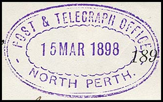Date stamps. It was considered in some sources that North Perth had been issued with a rubber oval date stamp for use with telegraph matters but no details of the design were previously recorded. Two types of oval date stamps for use with telegraphs are now known. |