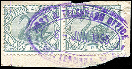 ![]() Coolgardie Railway Post & Telegraph Office. 4 March 1896. Prestige Philately August 2011 Lot 535. |