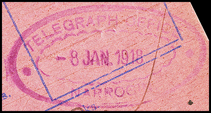 | The usual Post Office date stamp was sometimes used on telegrams. |