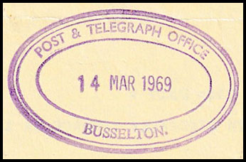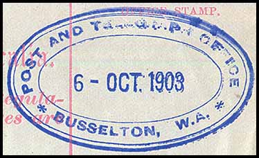 Has a magnificent rubber oval date stamp for Busselton - the earliest recorded.